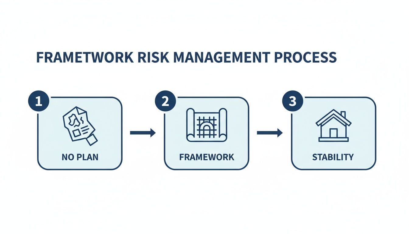 A framework risk management approach is the blueprint an organisation uses to build its financial and operational stability. Think of it as a structured, repeatable system for identifying, assessing, and controlling threats before they can cause real damage.