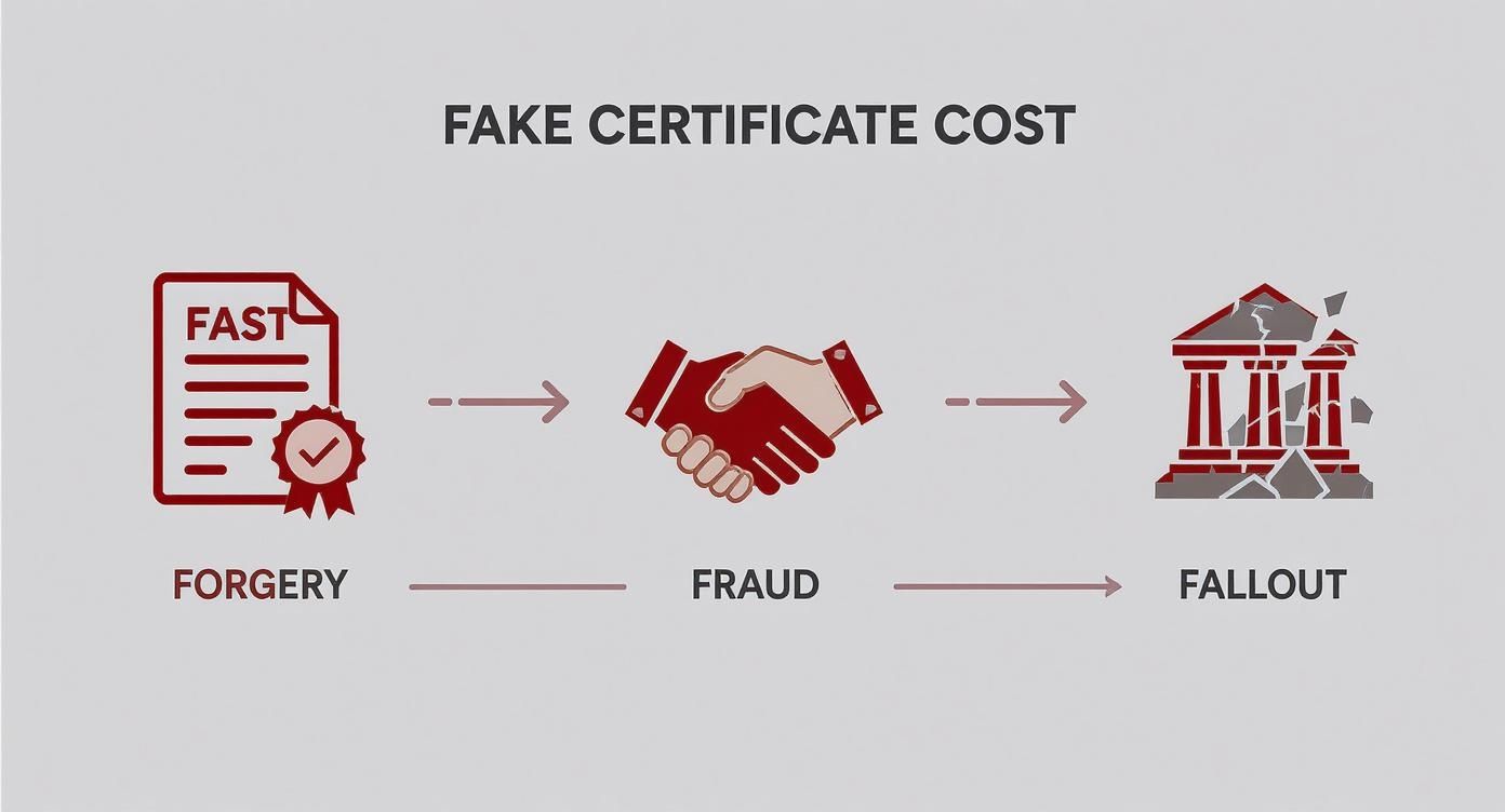 When a business accepts a fake or altered certificate, it unknowingly opens its doors to enormous liabilities. If an incident happens, you could be left completely exposed, facing a financial crisis. This is exactly why diligent, modern verification has shifted from a "nice-to-have" to an essential business practice.