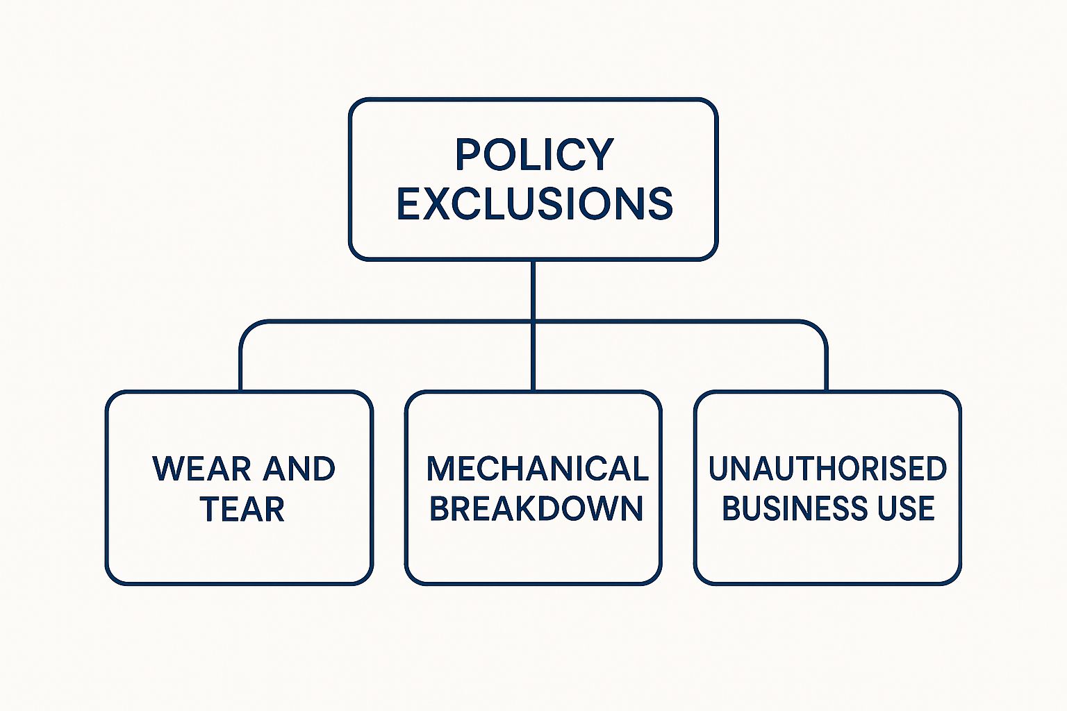 As you can see, exclusions fall into distinct categories. They are designed to separate genuine insurable risks from routine running costs or deliberate misuse of your vehicle.