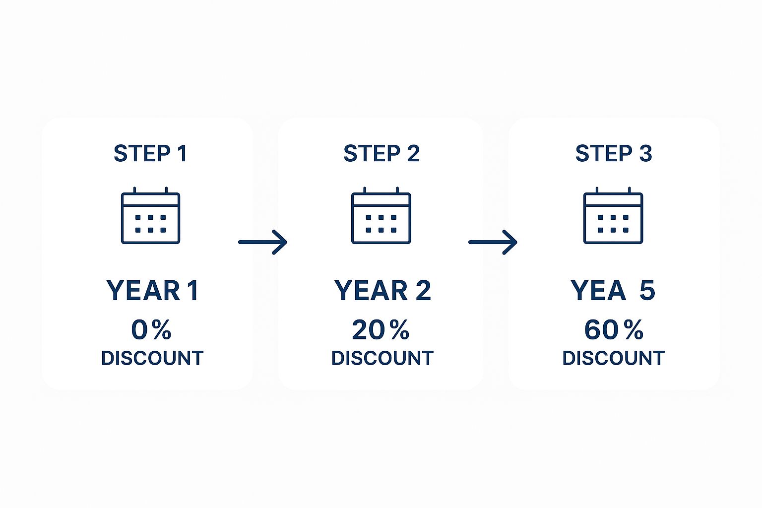 To give you a better idea of what to expect here’s how the discount typically grows.