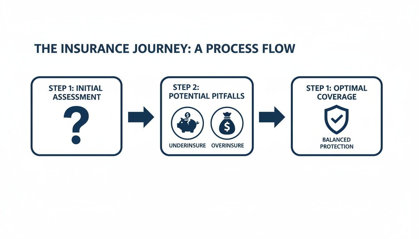 The process flow below highlights the common pitfalls of simply guessing your contents' value—a shortcut that often leads to being underinsured or even overinsured.