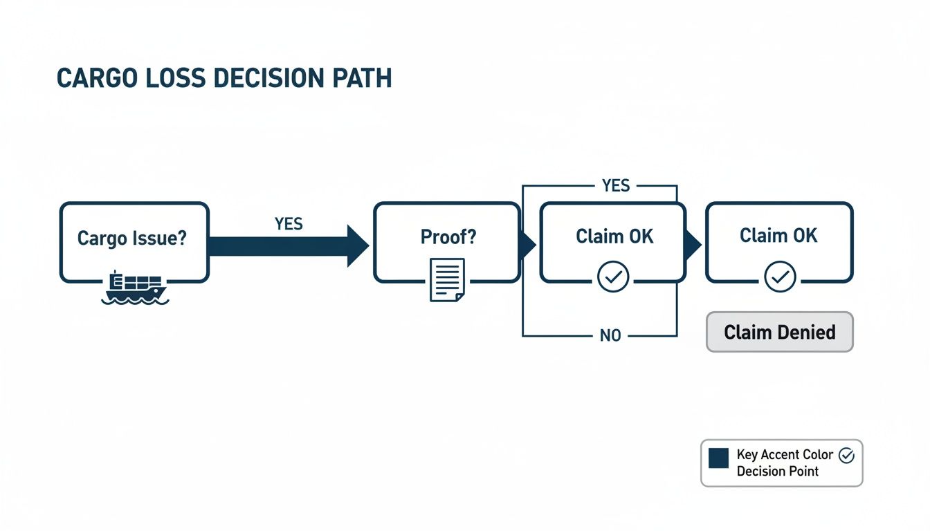 The chart below shows the simple decision path when something goes wrong with a shipment. It highlights a critical point: without solid proof, a claim hits a dead end.