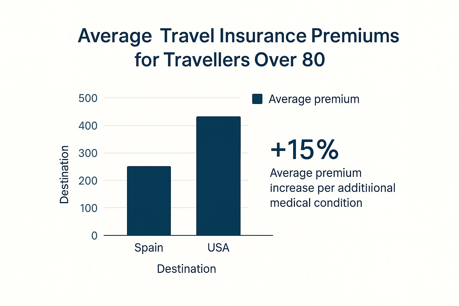 This infographic gives a great visual breakdown of how your destination and the number of medical conditions can impact average premiums for travellers over 80.