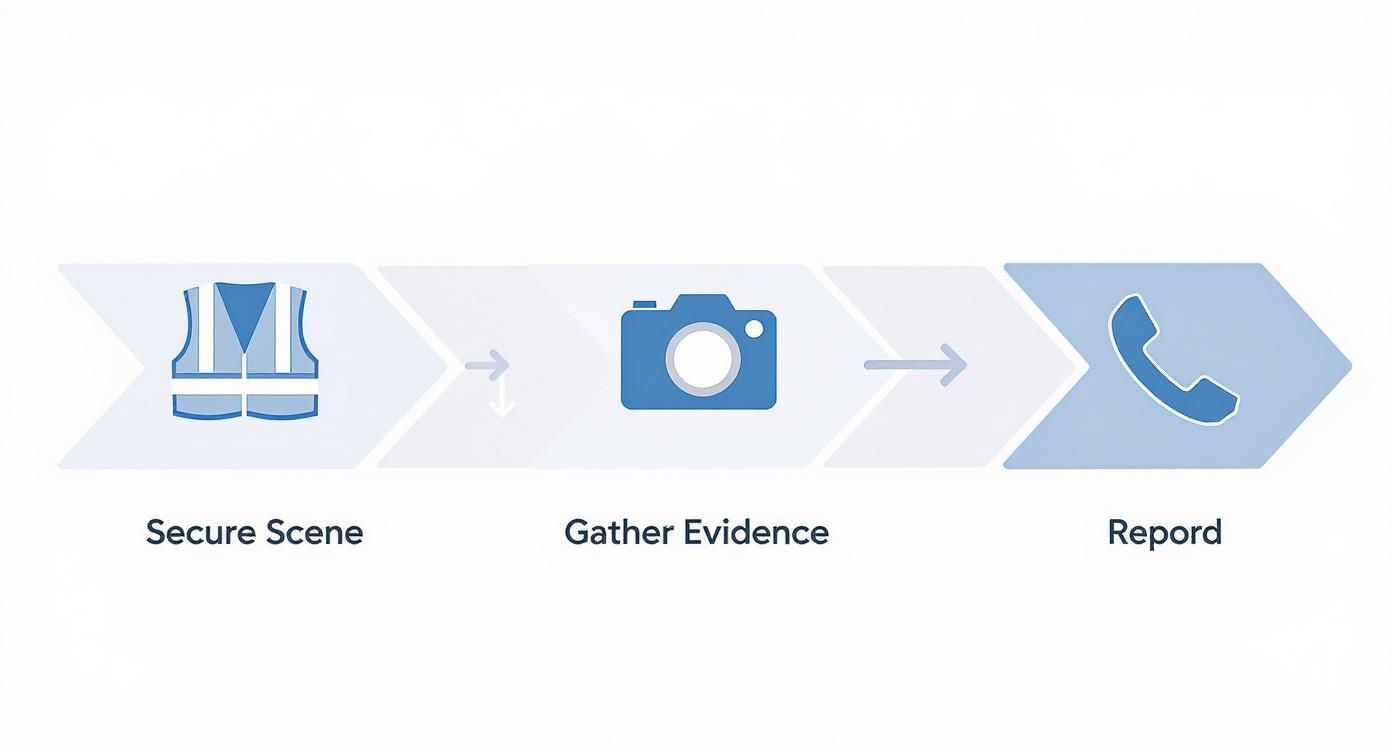 This infographic outlines the simple, crucial steps to take immediately following an incident to secure the scene and begin gathering evidence.