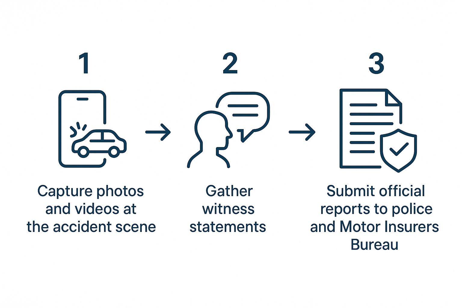 If the other driver is uninsured or drives off, you have to take two extra steps. First, report the incident to the police within 24 hours to get a crime reference number. Second, you or your insurer must contact the Motor Insurers' Bureau (MIB), which is the organisation that compensates victims of uninsured and hit-and-run drivers. In these situations, a strong evidence portfolio is not just helpful—it is your only path to a successful outcome.